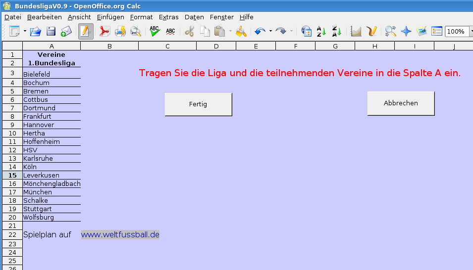 Um das Dokument auf eine neue Saison oder auf einen andere Liga anzupassen, gibt es eine Symbolleiste "Bundesliga", die nur einen einzigen Button "Neue Saison" enthält.