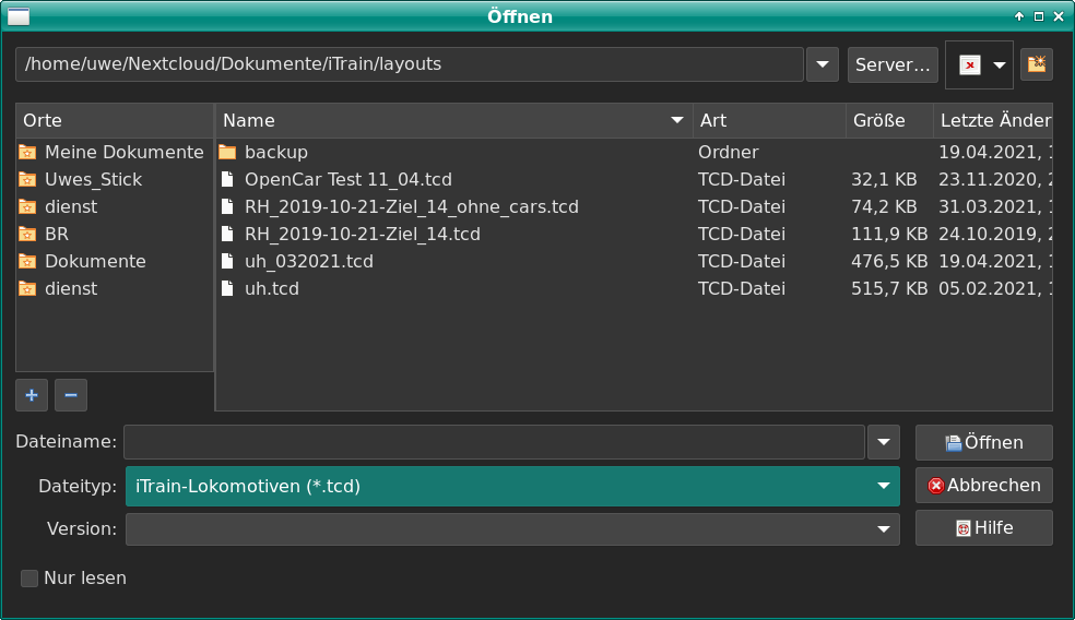 Die Liste kann unter Umständen sehr lang sein. Dann wählt Ihr Eure iTrain-tcd-Datei aus und klickt auf Öffnen.
