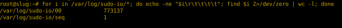 for i in /var/*; do echo -ne "$i\r\t\t\t\t"; find $i 2>/dev/zero | wc -l; done