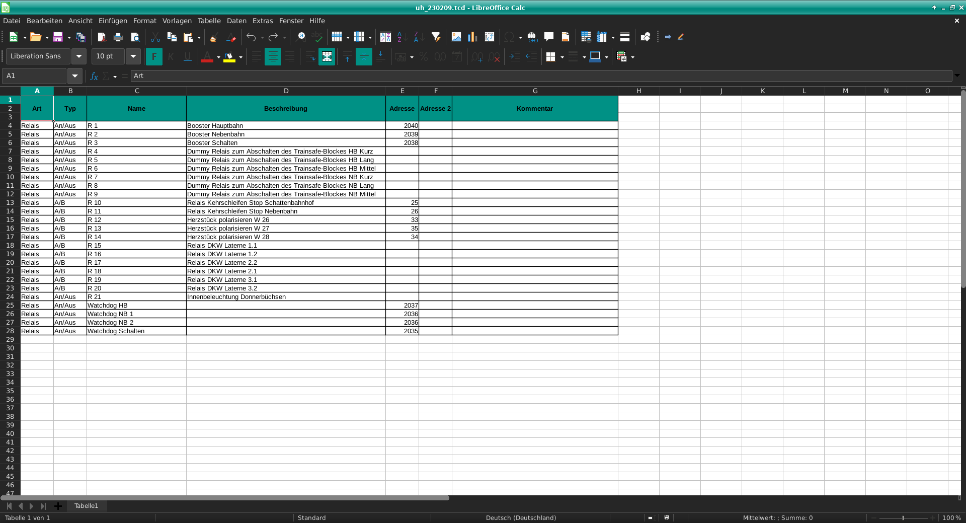 Relaisdaten aus iTrain in LibreOffice Calc importieren