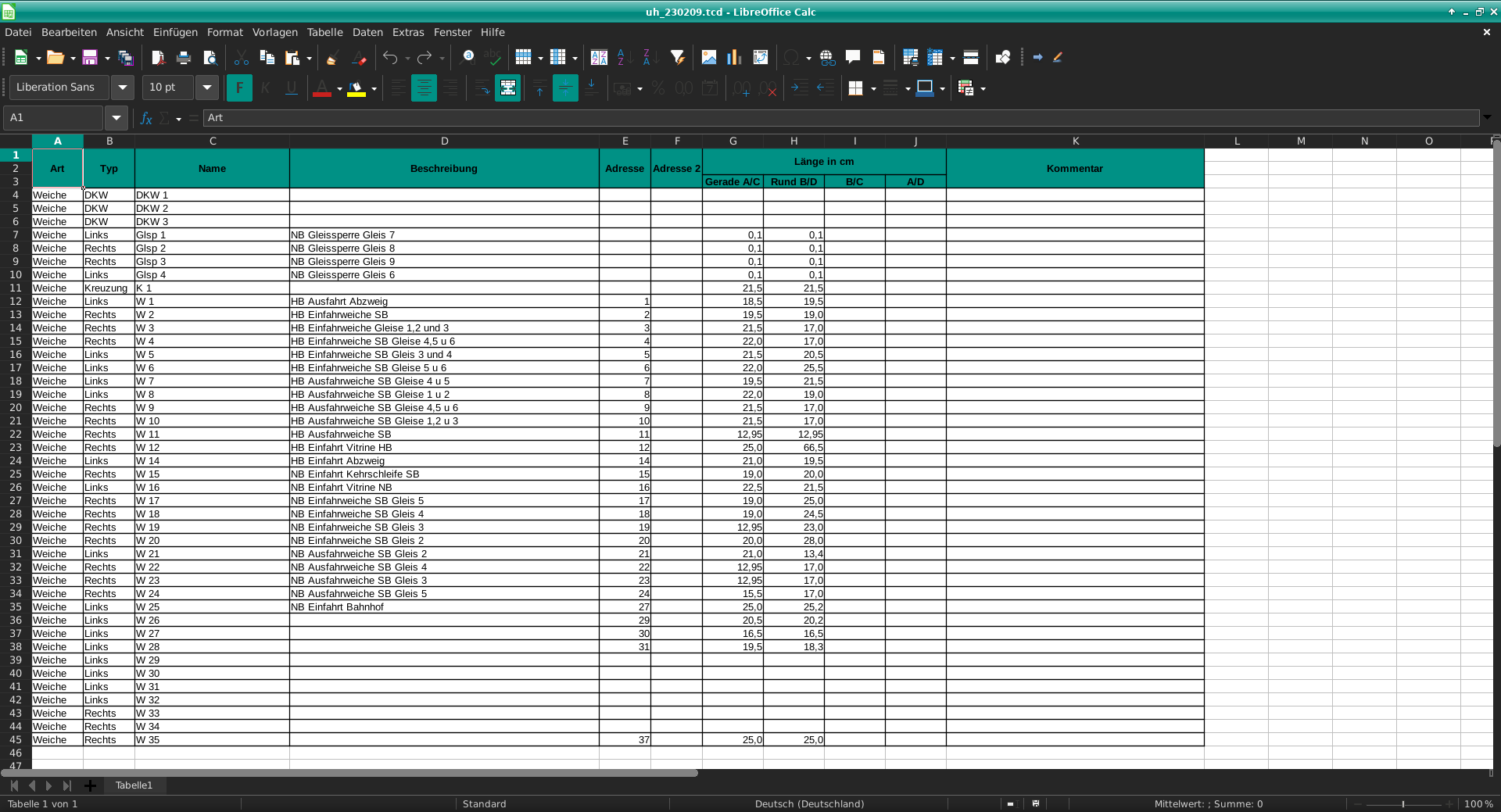 Weichendaten aus iTrain in LibreOffice Calc importieren